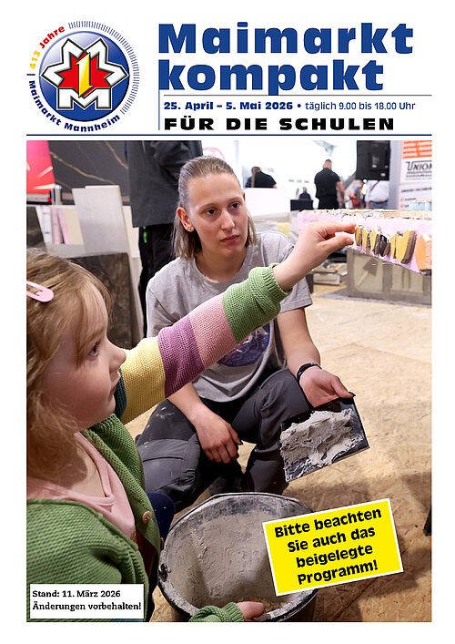 Für Lehrkräfte, die gemeinsam mit ihrer Klasse den Maimarkt besuchen wollen, gibt es das Servicepaket „Maimarkt kompakt“ mit allen Maimarkt-Highlights und Programmpunkten speziell für Kinder und Jugendliche.